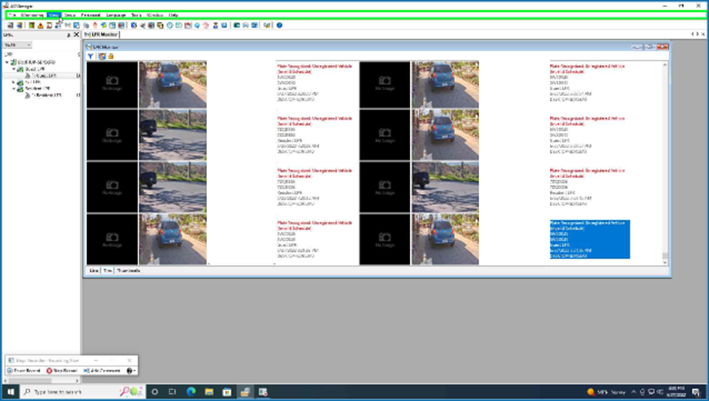 Step 10: Double-click on "LPR Monitor (window)" in "ASManager" to fill the middle screen