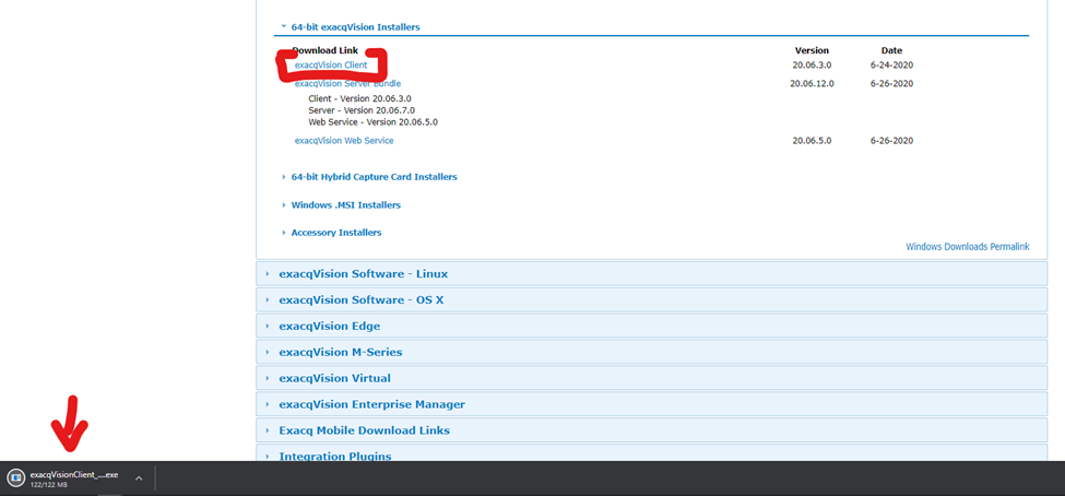 - - Click the “exacqVision Client” Link, This will start the download process.